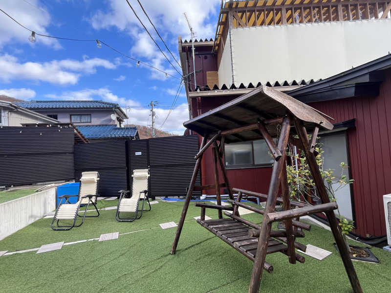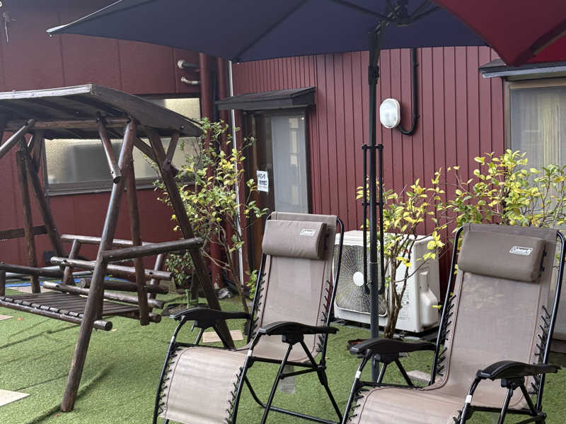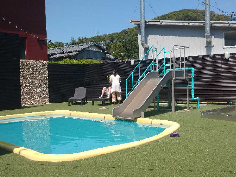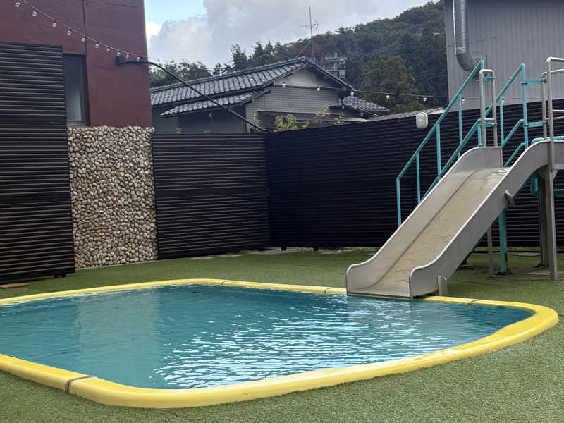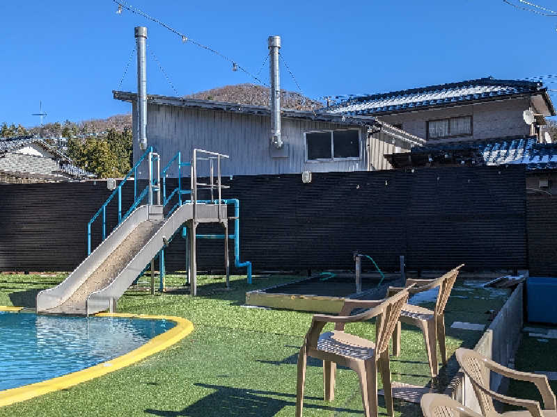 屋外エリアにサウナルーム!プール!すべりだい!ブランコ!水風呂!椅子もたくさん!