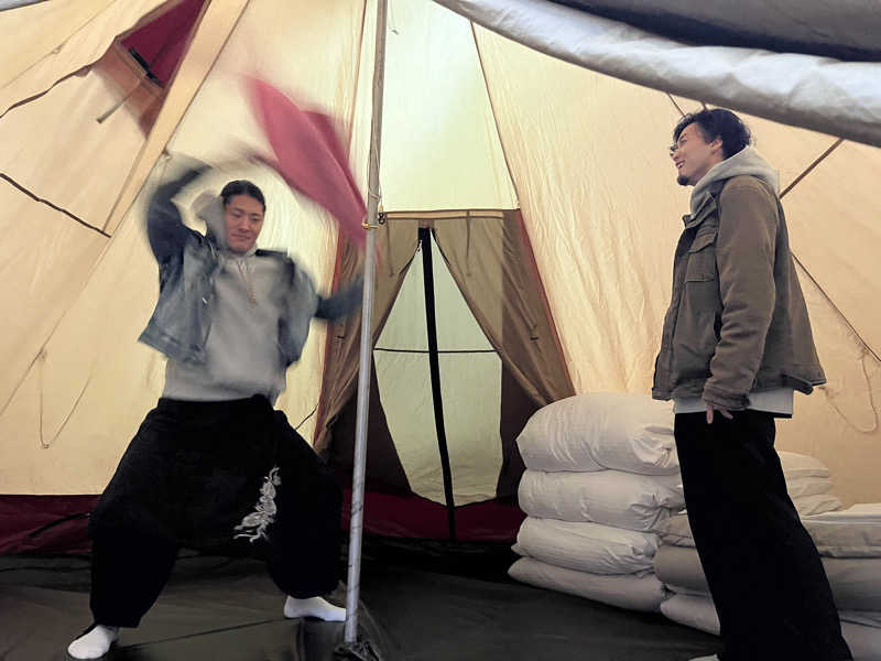 2人が泊まるテントが何個も並ぶお部屋で開催🤣✊🏻