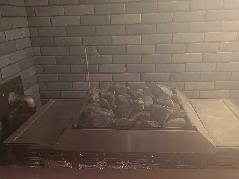 サウナ室は20人くらいは入れる大きさですが、それに負けないくらいの大型ストーブ。