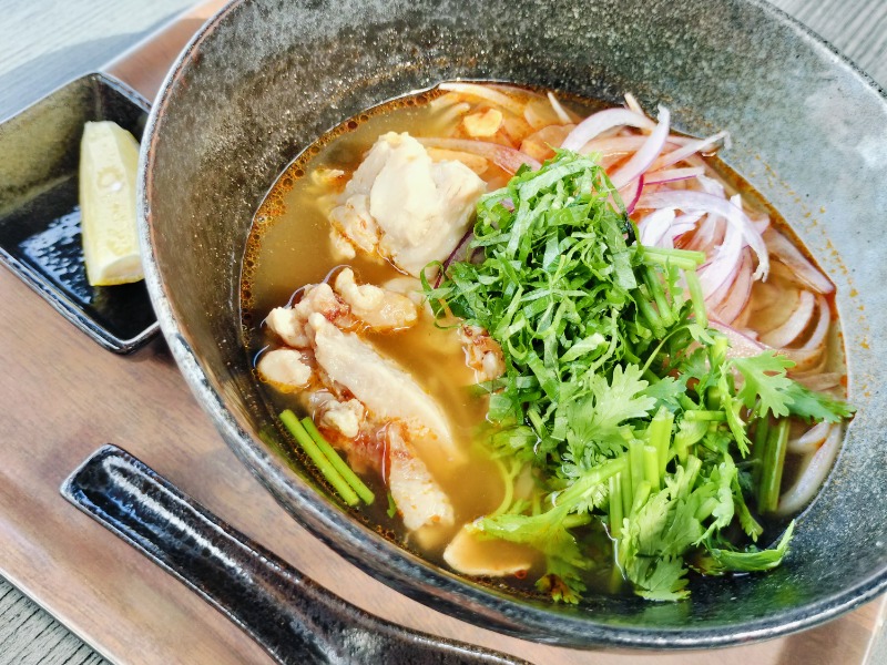 レモンをギュッとね🍋辛くないです。トッピングの鶏肉おいしいです。パクチーのキャンセルを忘れましたです