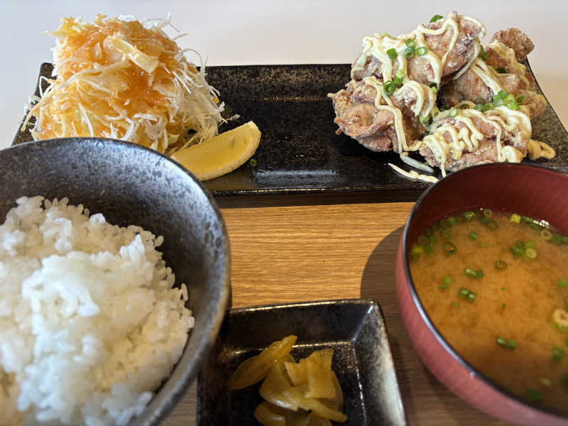 とエシャロット入りギョウザ。 竜田揚げに近いからあげ美味しかった。