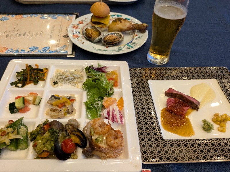 そして外気浴。ととのい椅子はないので、露天風呂の空きスペースに腰掛ける。目の前に広がる海。心地よい海風。聞こえてくる波の音。海面が満月に照らされ輝いている。なんだここは天国か。