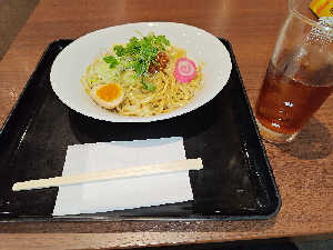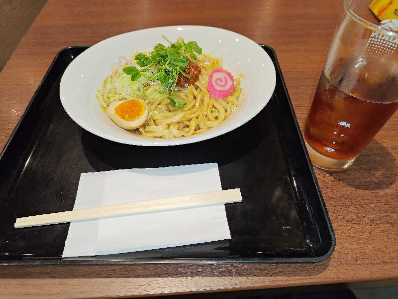カレーまぜうどんコレは旨〜 烏龍茶は思わず写真撮る前にフライングで飲んでしましたのは概ね事実デス‥
