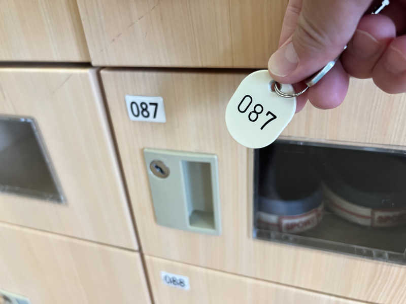 検温器で体温測定して券売機でチケット購入。靴箱キーと引き換えでサウナ利用者はオレンジ色のロッカーキーを渡される。