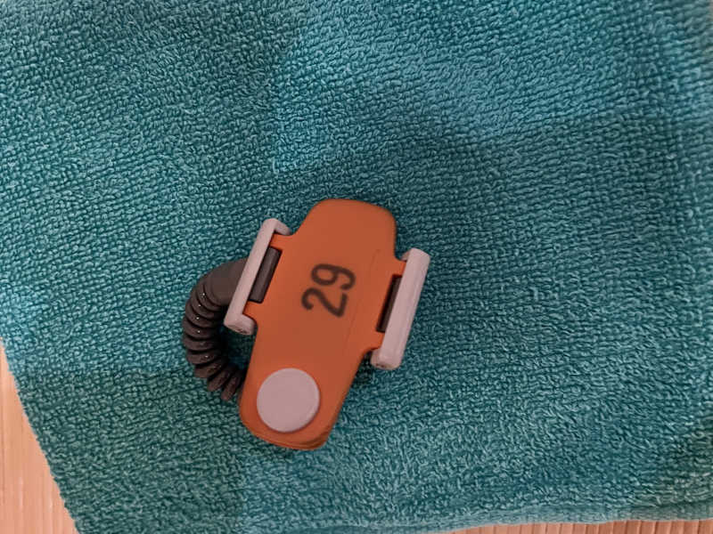受付。券売機でチケット購入。キャッシュレスでノ支払い可能。どれに対応しているか分からなかったので、とりあえず交通系で支払い。下駄箱の鍵と券売機で購入したチケットを渡す。オレンジ色のロッカーキーと緑色のタオルを受け取る。これがサウナ利用者の目印のようだ。