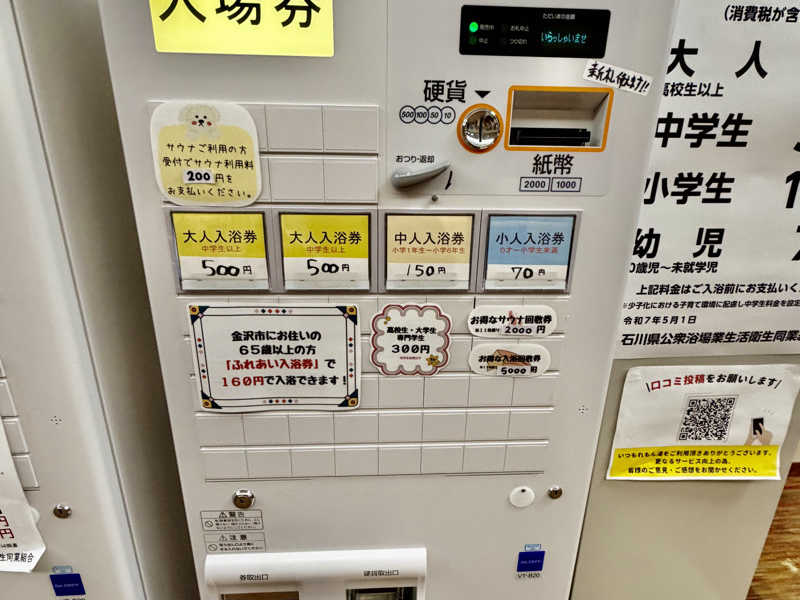 2023年3月よりサウナが有料。(2025年11月サウナ料金改定)