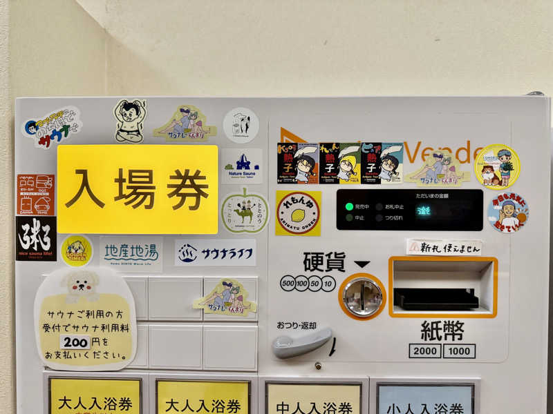 サウナを利用する際は、入浴料(500円)+200円をフロントで支払うことでサウナマットが貸与される。 サウナマットは券売機横のカゴに返却すること。 |