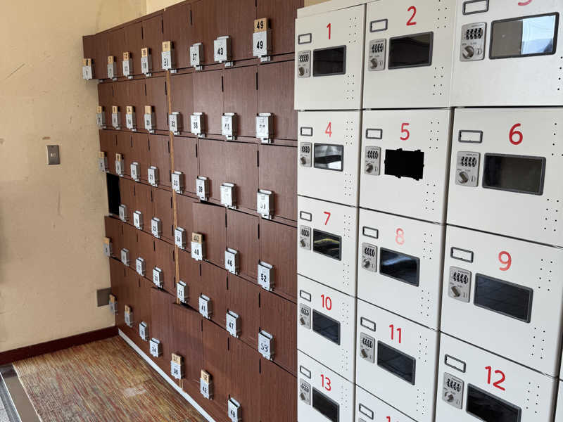 受付左右に男女の入り口がある昔ながらの銭湯レイアウト👫 ロッカールームは鍵付きロッカーで安心