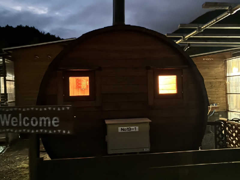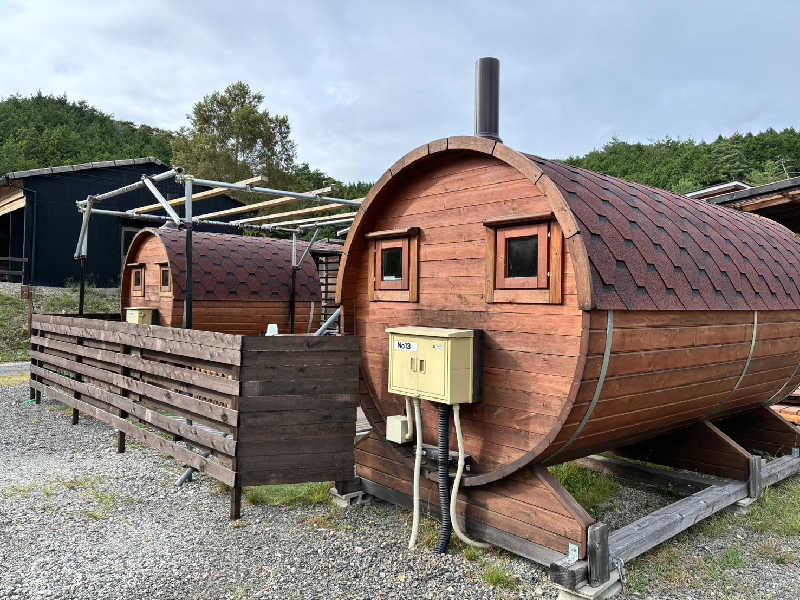 キャンプ場内に設置されているバレルサウナ。