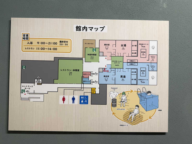 中に入って施設の方に「何かあったんですか?」と聞くと、「女性側でサウナに長く入り過ぎて倒れた方がいて、お客様の中に看護師さんがいたので応急処置はして頂けました。先ほど意識は戻ったみたいですが…」とのこと。