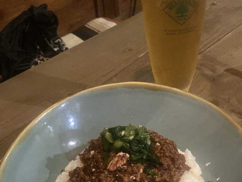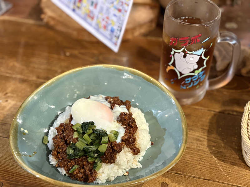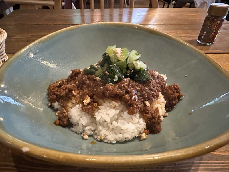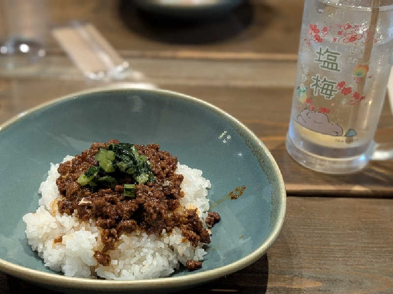 サウナ前に空腹に耐えかねて喫食 キーマと麻婆の合いの子? 絶妙な辛さと塩味 サウナ後に食べたかった…