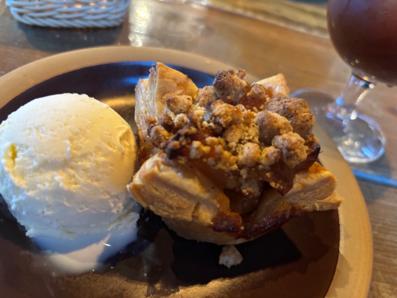 サクサクとしたパイ生地に、トロリと甘いりんご、シナモンの香りがして美味しかった〜!バニラアイス付き。