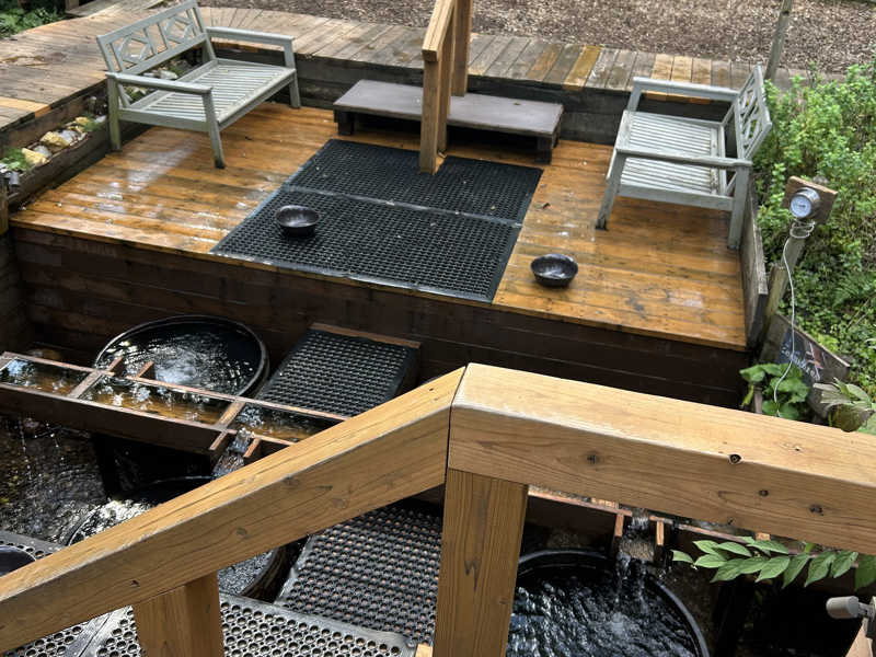 天気は生憎の小雨。でも雰囲気が悪くない。サウナ室では屋根にあたる雨音が心地よく響いてくる。やや低めの温度かな?と思いつつもロウリュすればすぐに体感温度は上昇。このじわじわ感は、他のコンクリートの施設では味わえない。