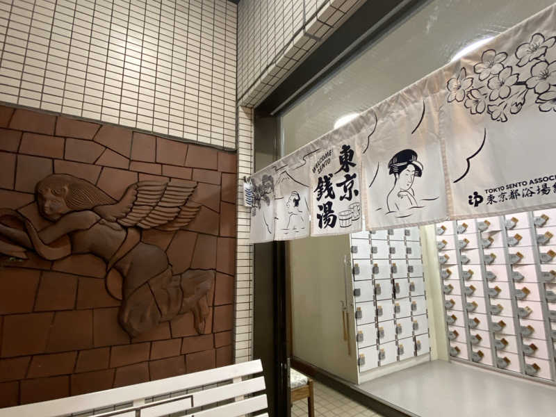 柔らかな衣を翻し、細き腕を天へ差し伸べるその姿は、都会の銭湯にはあまりに不似合いであった。