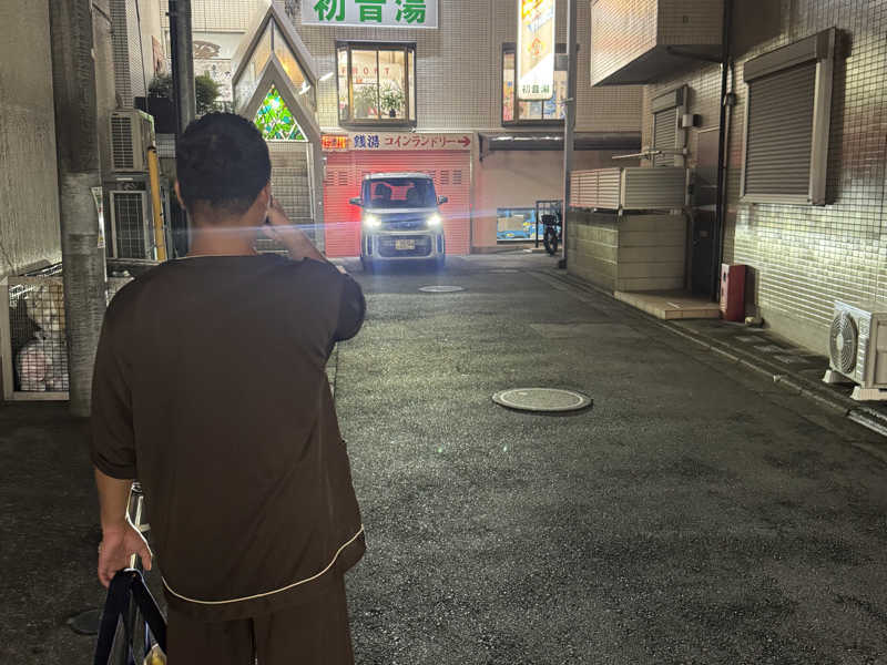 今日も心のサ友、自前の館内着を着用したサ島氏と銭湯巡り♨️