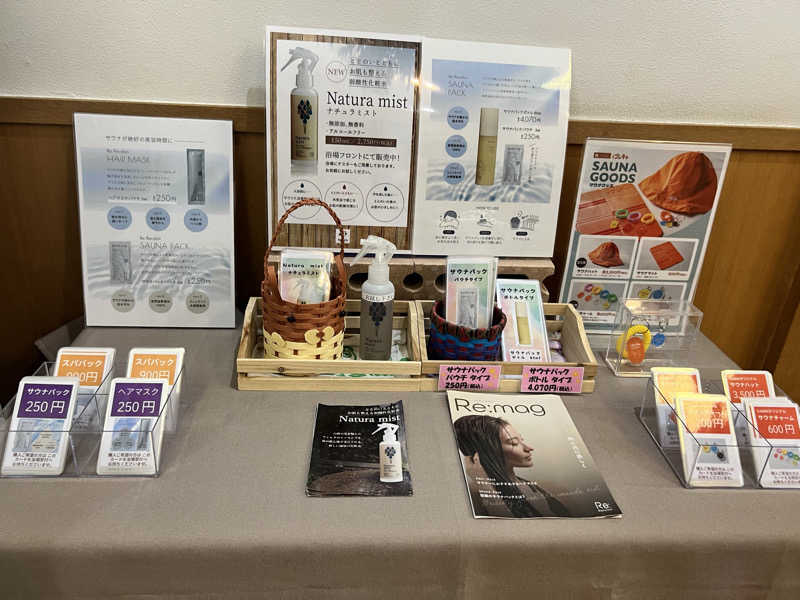 浴場受付ではサウナモンスターのサウナハットや、MOKUのサウナタオルも販売。