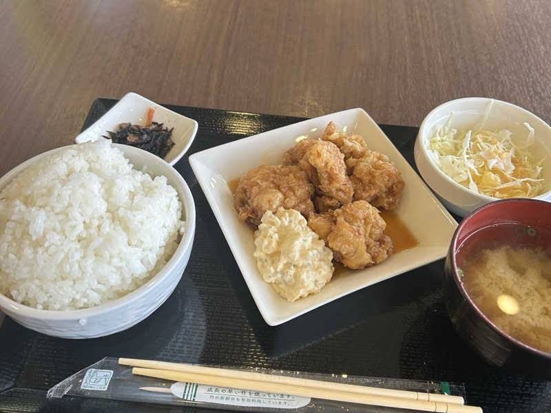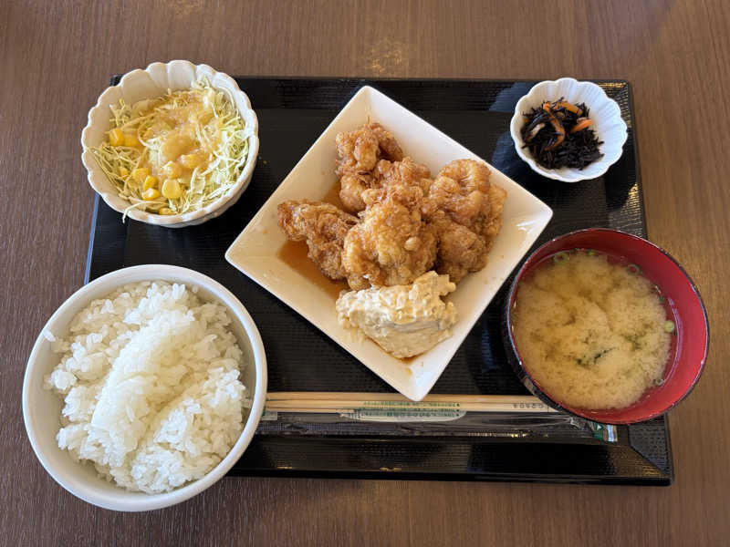 入浴セットメニューでお得❤️ふっくらチキン、すっぱタルタルソースがいい仕事してる。