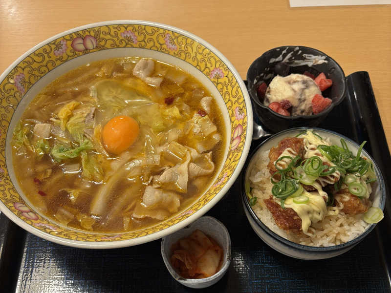 白菜ラーメンは少しピリ辛! デザートがついているのが、良かった😆