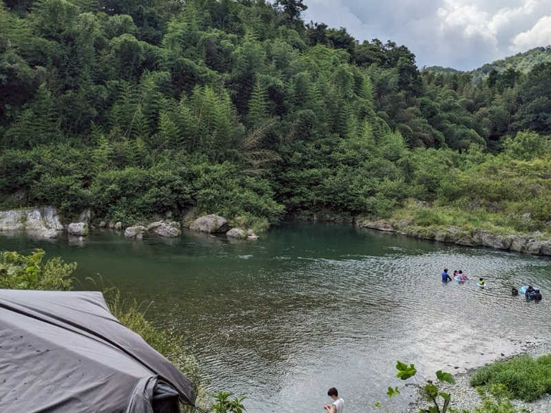 川の温度も最高だし、手前はゆるやかな流れで水浴で浮いてると自然と一体となったみたい。
