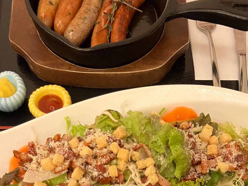 ソーセージのケチャップが減量。マスタードソースがカラシに代わっていて少し残念💦でもうまし♡