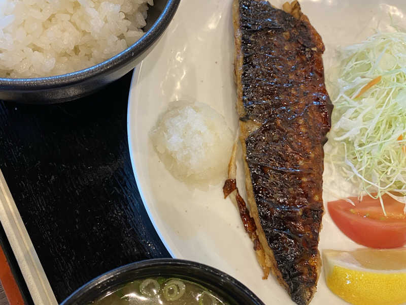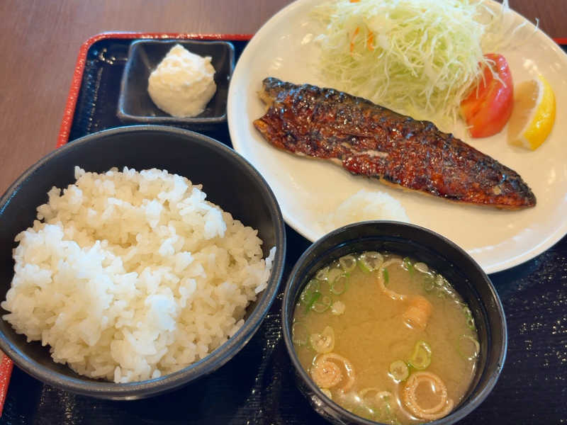 塩サバ🐟おいしいよ サウナにも、もたれない😊 春日店よりも味噌汁が大きい