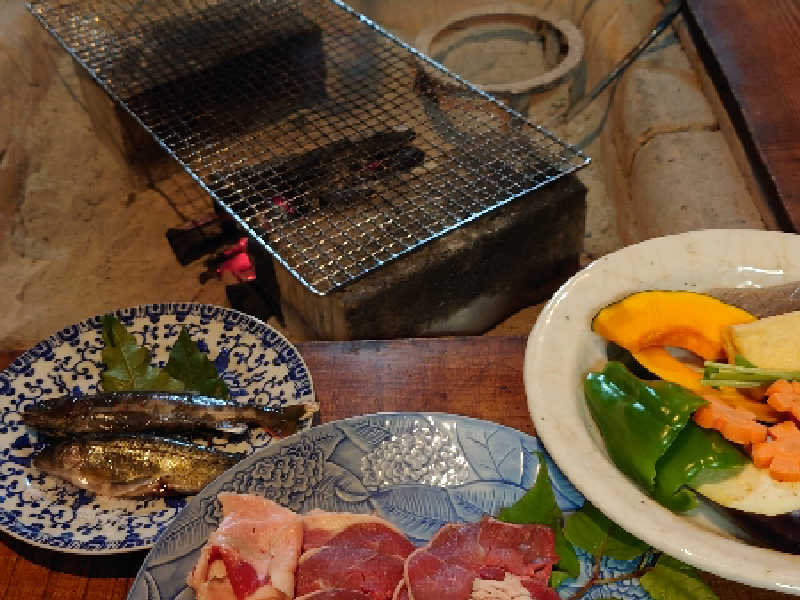 鹿肉のBBQ、鰹のタタキ。あと写真にはないがアマゴが美味しかった!