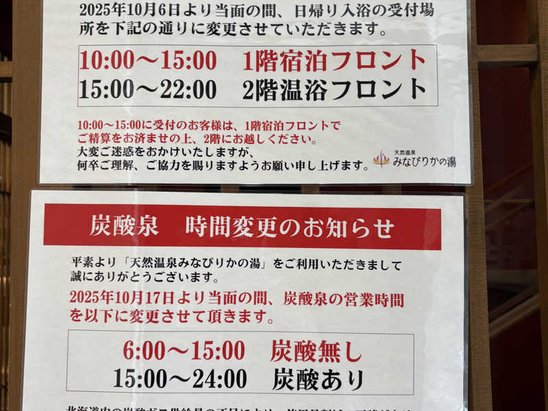 “(2015年)11月1日より[ぴりかの湯]から[みなぴりかの湯]へと、名称が変更致します。
