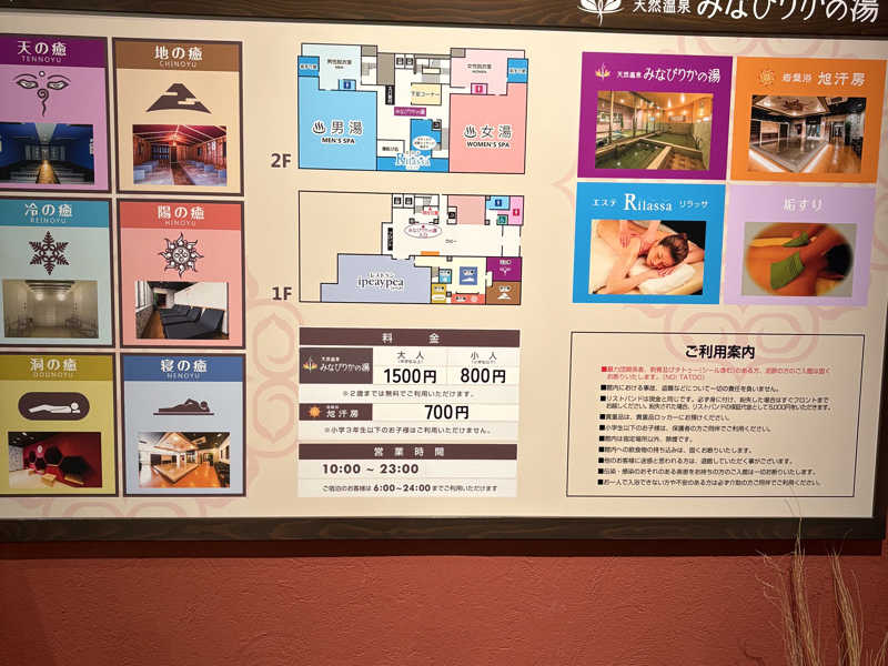 “みな”はアイヌ語で“笑う”、“ぴりか”はアイヌ語で“良質な”という意味があり、ホテルラッソグランデ旭川の“良質な”温泉で、お客様に体を癒して寛いで頂き笑顔になって“笑って”頂きたいという思いが込められております!”(じゃらんのサイトより)