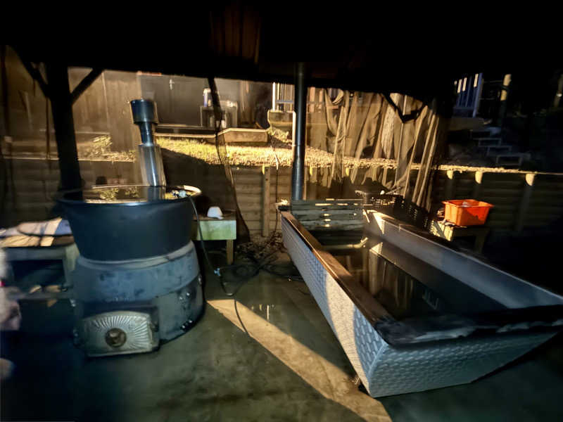 ★瀧のサウナ小屋★ こちらは、「貸切利用」と「(土日祝のみ)パブリック利用」が可能です。 ◎何度もロウリュをしても熱が冷めないkivi-ikiの薪ストーブ ◎ロケットストーブで沸かす野外風呂 ◎水シャワー、五右衛門水風呂、滝壺へダイブの3種の水風呂あり