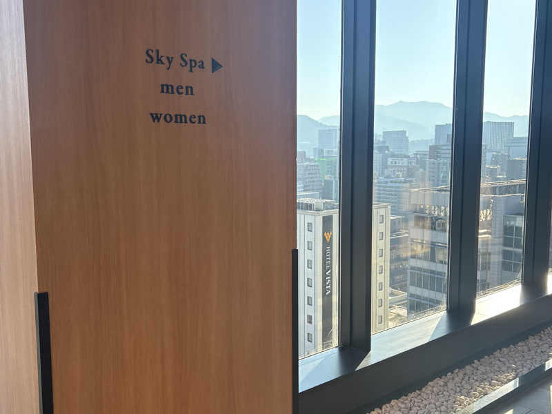 浴室はフロントから1階上がって最上階の14階。確かに眺めが最高でした。
