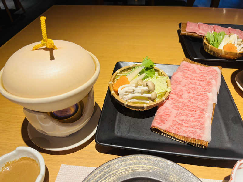 次から次へと供されるご馳走。霜降りお肉の次は地鶏鍋。