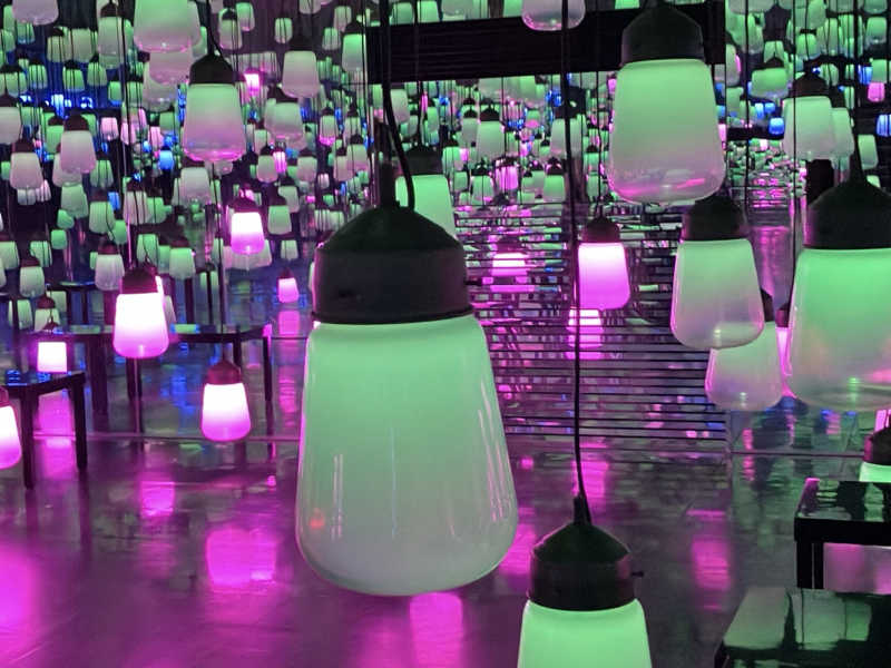 入り口を開けるとチームラボのランタンが広がっており、幻想的な空間が広がっておりました。しばらく見惚れましたね。ちなみに頭を派手にぶつけるし、小銭が全然見えなくて苦労したりするので注意です⚠️