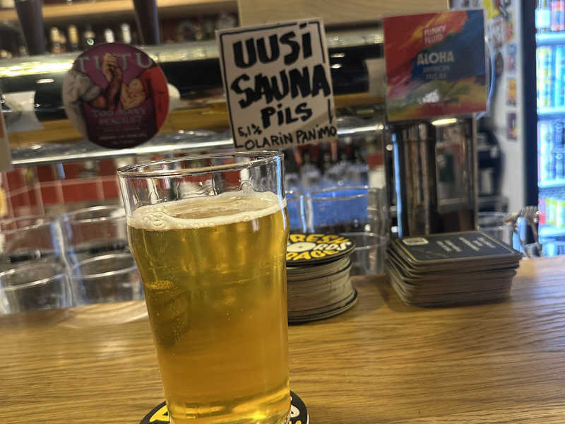 マンションが頭上見える中、バーから聞こえる音楽とフィンランド語で話す地元民たちに混じりながら、ととのった〜!