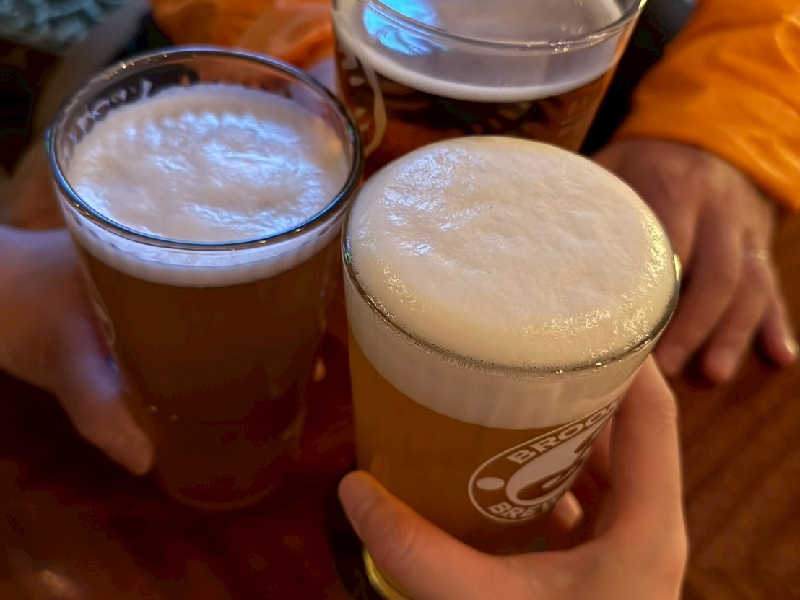 サウナ後、そのまま着替えずにバーカウンターでビールや料理を注文できるのが良い!