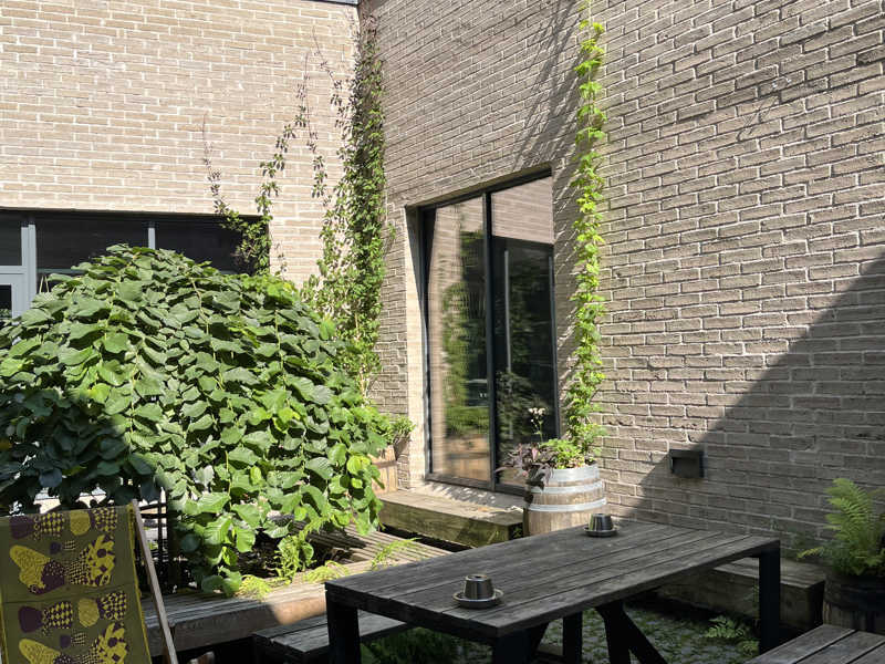 シャワーを浴びておしゃれな中庭で外気浴。