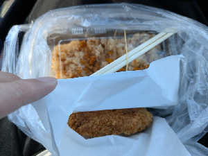 久慈からいらしてた。北海道の鹿のメンチだそう。車内ですぐ食べると伝えたら温かいのだしてくれた。
