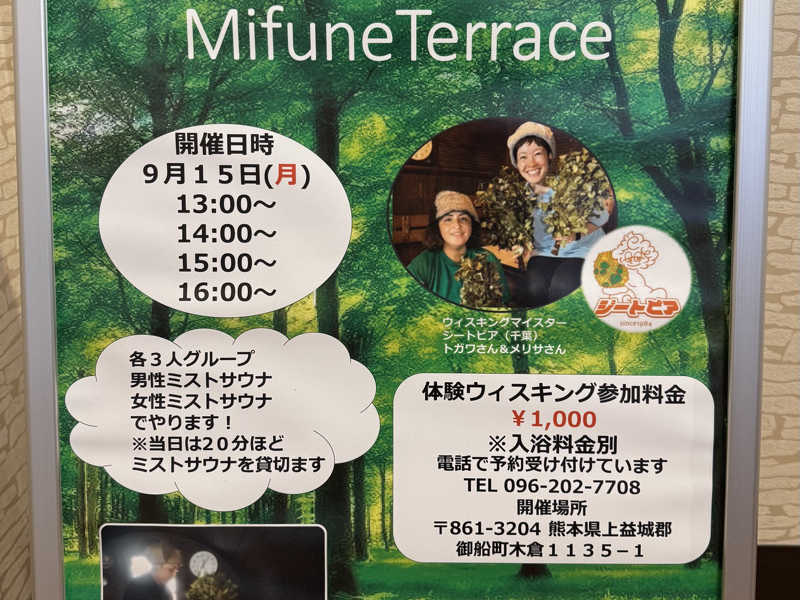 このミフネテラスは、一年前の 2022年11月1日にオープンしたばかりの新しい施設です。ホテル、温泉、サウナ施設、飲食店、会議室が入る娯楽施設のようです。