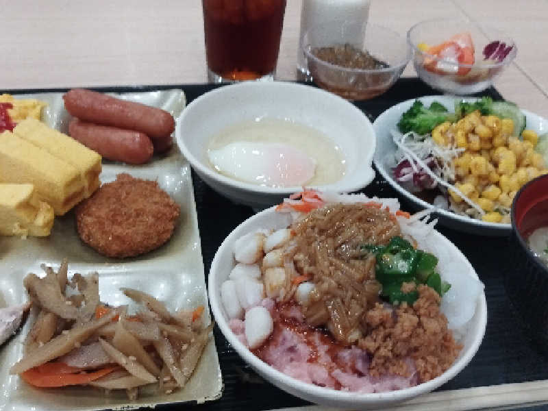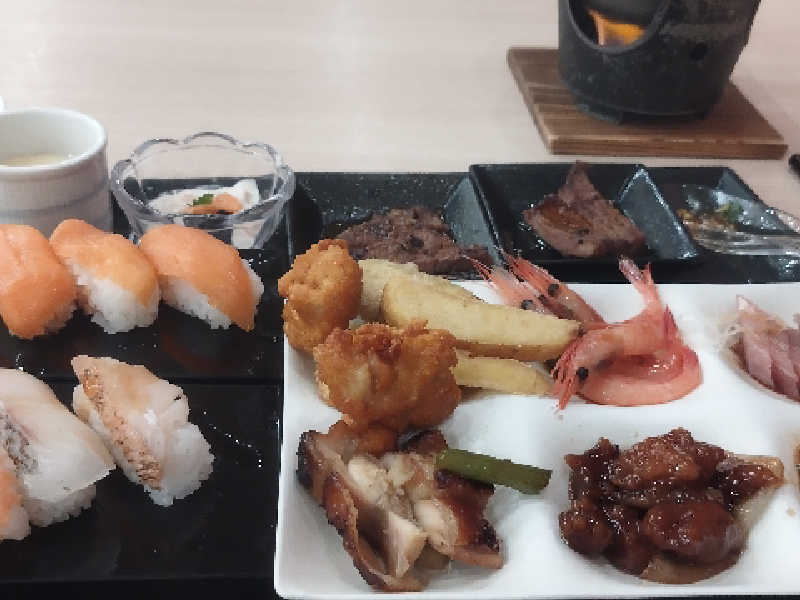 さすがに広い。窓際の風呂からは海が一望、それ以外にぬる湯と熱湯もあり充実。サウナは昭和サウナで80度前後と物足りない。さらに水風呂はなくかけ水のみ、休憩スペースはあるが外気浴はできず、なかなか整わず。でも横になるスペースは十分あるから気持ちよく休憩できる。結果2セットで夕食の時間。