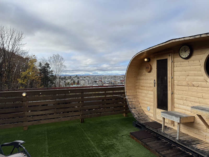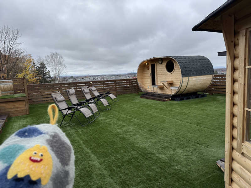 露天風呂と同じ階のテラスにはととのい椅子が2脚。澄んだ空を見上げながら、幕別の心地よい風を浴びてクールダウン...😌まさに開放感が生む贅沢なととのいです。