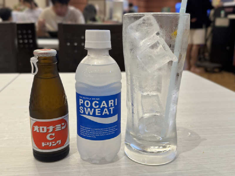カフェは閉まっている時間帯なので、自販機でオロナミンCとポカリを調達して、飲んだらオロポに
