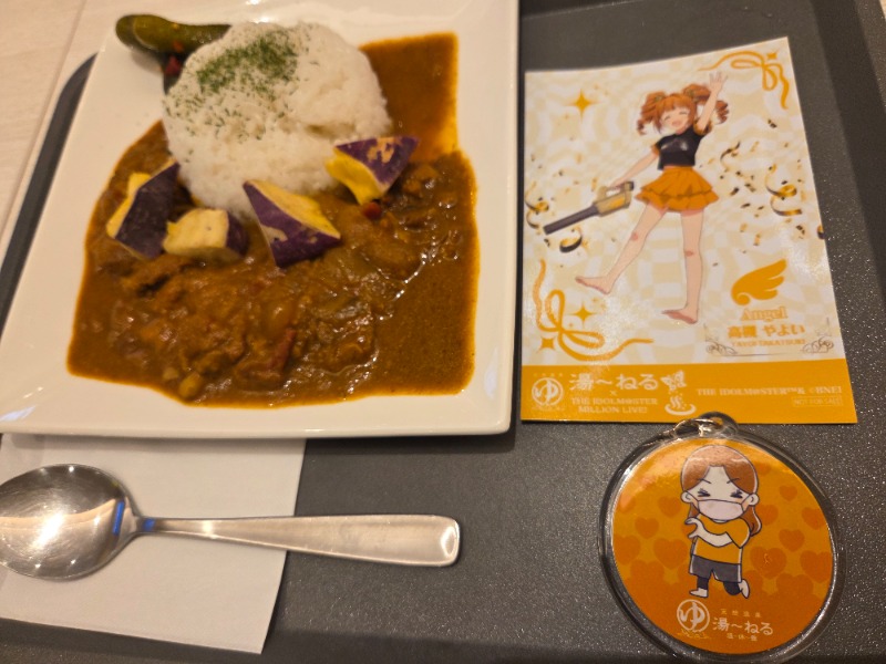 アイマスはカレー! せんべいが食感のアクセントになっているスパイシーカレーでした! 美味い!
