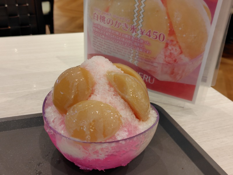 8月限定スイーツ 白桃がふんだんですごい 大きさも大きいのでだいまんぞく