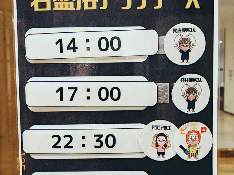 とはいえ15時サウナ室サマータイム(仮)くん回、17時岩盤浴発注お姉さんお茶回、晩飯、仮眠、21時プリンスくん回、22時半岩盤浴サードインパクト回、24時サウナ室ピエロさん良い香りの豆とかのゲリラを受けつつ満足に就寝💤朝風呂無し❗(笑)