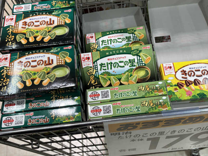 抹茶のたけのこの里を子へのお土産に買ったり🍵