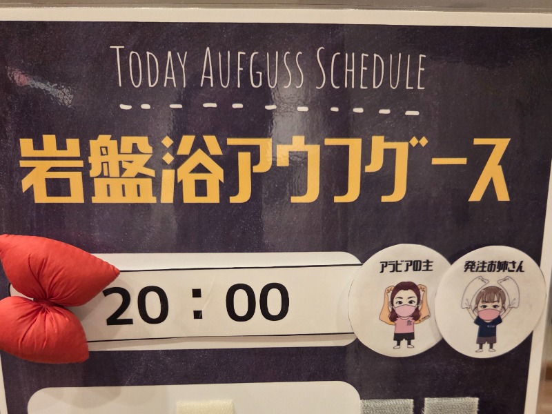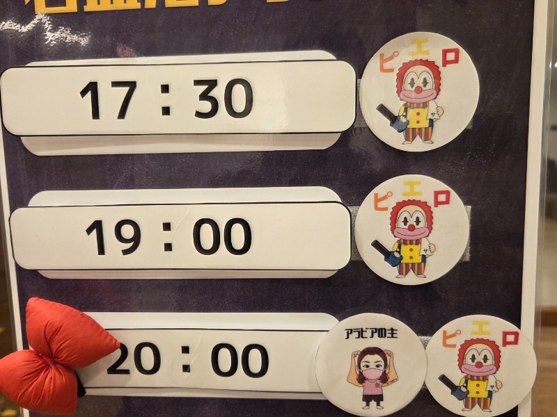 入館19時20分、湯〜ジムでマシン一周してから浴室で身体を洗いアウフグースの列に並んだ。20時ピエロさんの「ムキムキピエロ」アウフグースを受けた。間違えるとブロワーで風吹かせながらピエロさんがスクワットする回だった。最後は大量のロウリュで熱くなり上の段から順にサ室を出て行く人が多数、最後は中段も人がいなくなっていた。