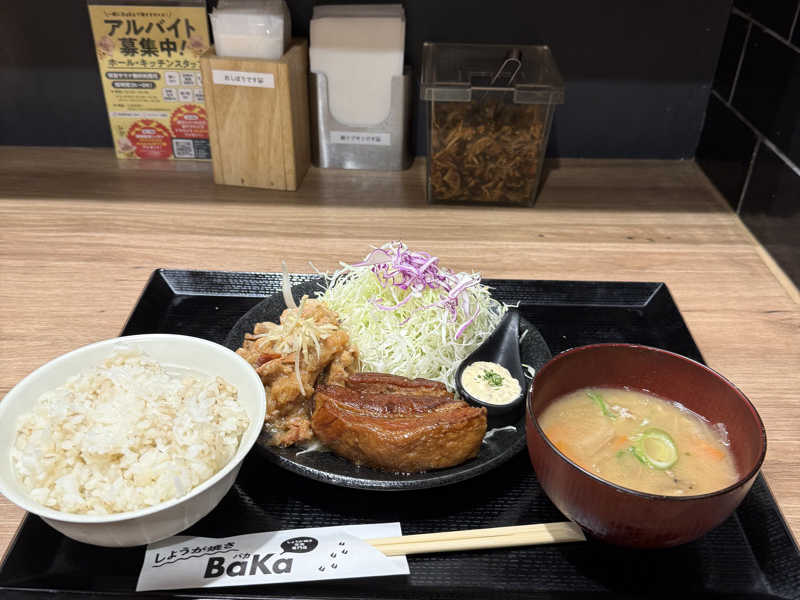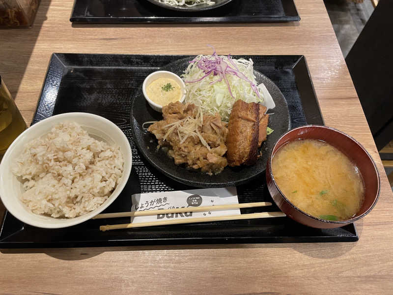 しょうが焼きと麦飯の相性が抜群🙂