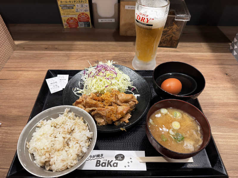 にんにくたっぷりの生姜焼きで1杯、サミソおかわりとめっちゃ美味い玉子で絶対2杯はご飯が必要になる