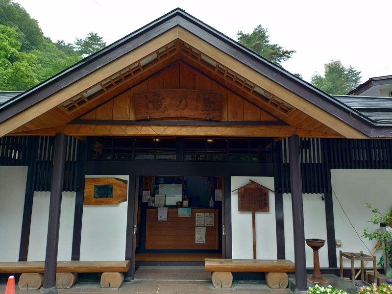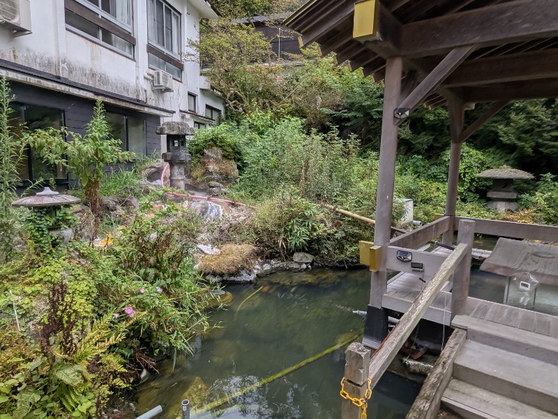 ゆっくりと40分を過ごす。そのまま歩いて滝の湯へ。45℃の白濁のあつ湯は最高です。30分の制限時間内で終了。