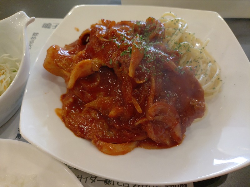 甘めのケチャップで濃いめに味つけされた豚肉と玉ねぎ