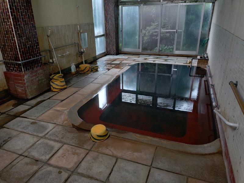 42℃ながら入るとトロトロ、身体にまとわりつく感じがたまらない。30分過ごし再度降り出した大雨の中帰路に着く。